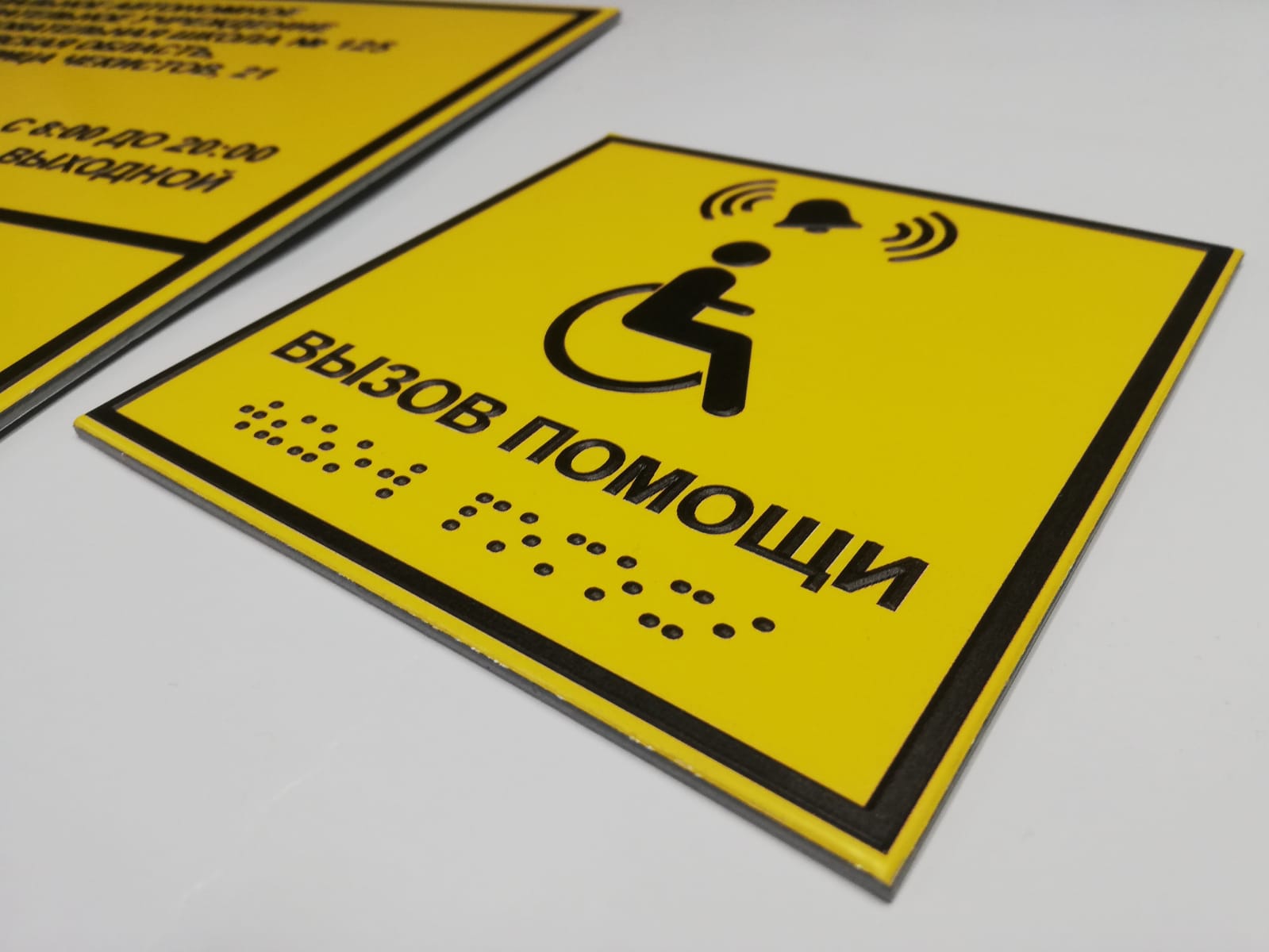 Тактильная табличка со шрифтом Брайля "Кнопка вызова помощи"