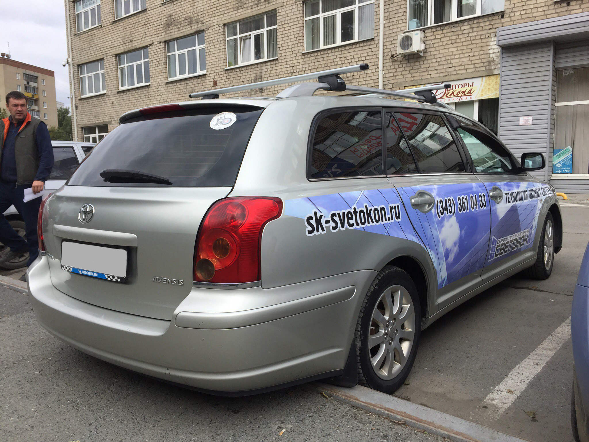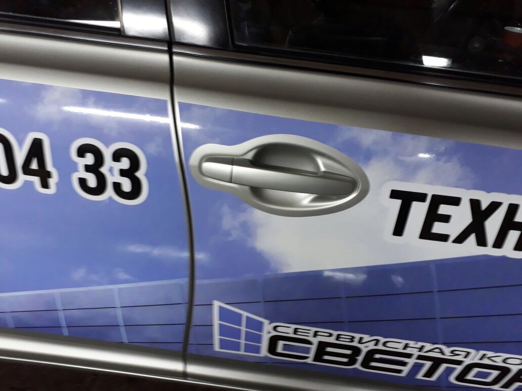 В стоимость брендирования данного автомобиля входило: создание макета, изготовление наклеек, мойка автомобиля и монтаж