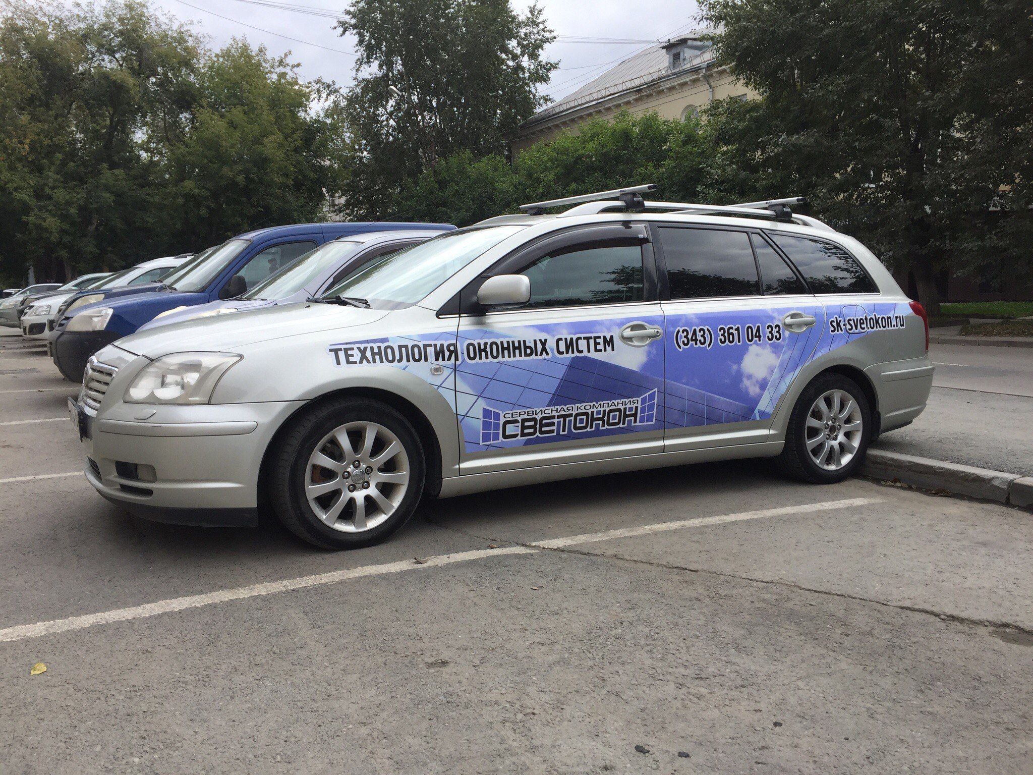 Так, для компании по продаже и установке оконного оборудования "СВЕТОКОН", было выполнено брендирование автомобиля "Тойота" по современному эскизу.